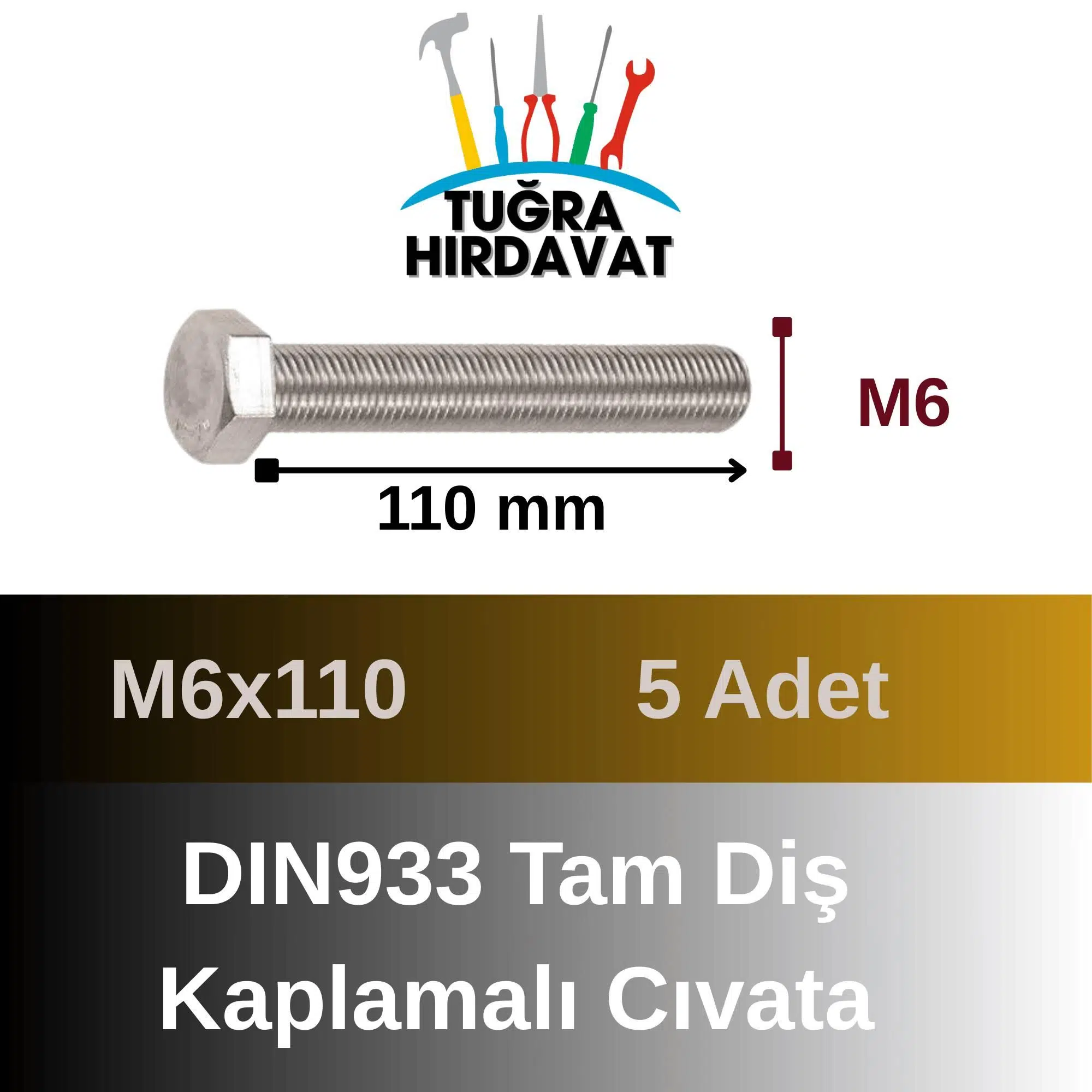 Çelik Cıvata 6X110 DIN933 Beyaz 5 Adet 8.8 Altıköşe