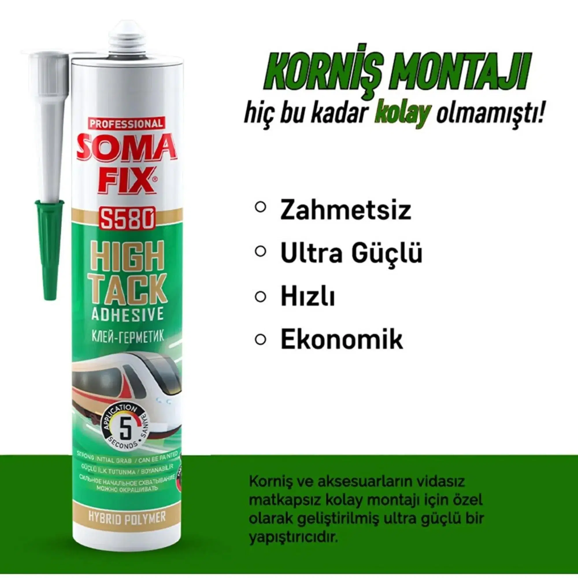 | Etiketler | SOMAFIX S580 HIGH TACK KORNİŞ YAPIŞTIRICISI 290 ML TAŞ,BETON,METAL,CAM |