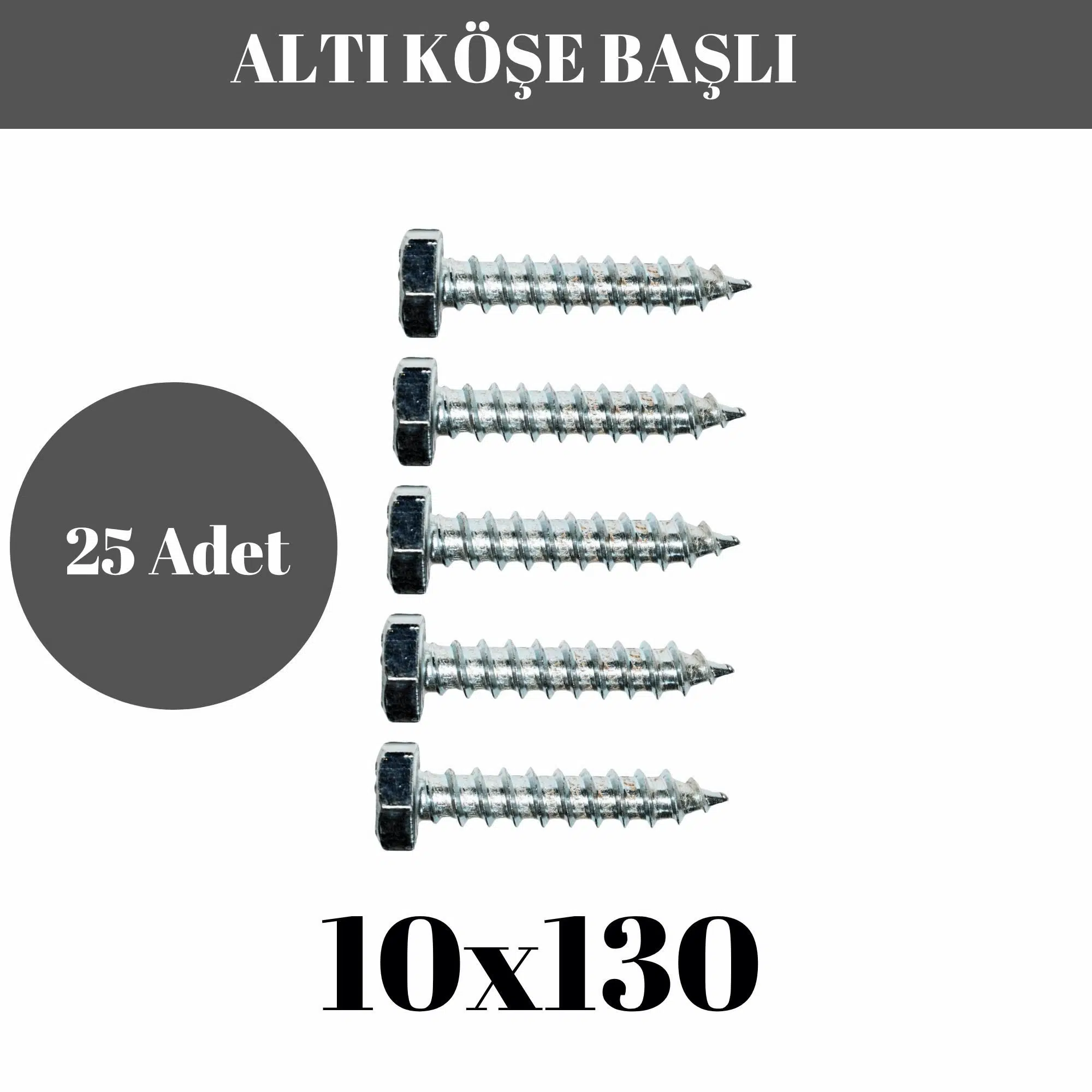 Trifon Vida 10x130 mm Altı Köşe Anahtar Başlı Vida 25'li Paket