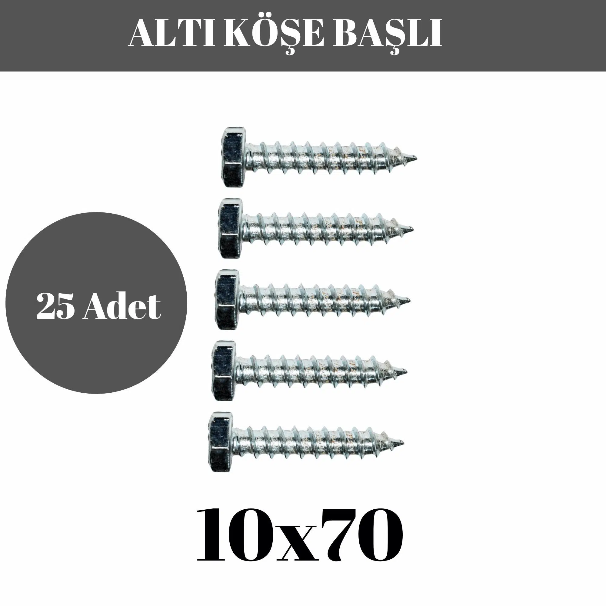 Trifon Vida 10x70 mm Altı Köşe Anahtar Başlı Vida 25'li Paket