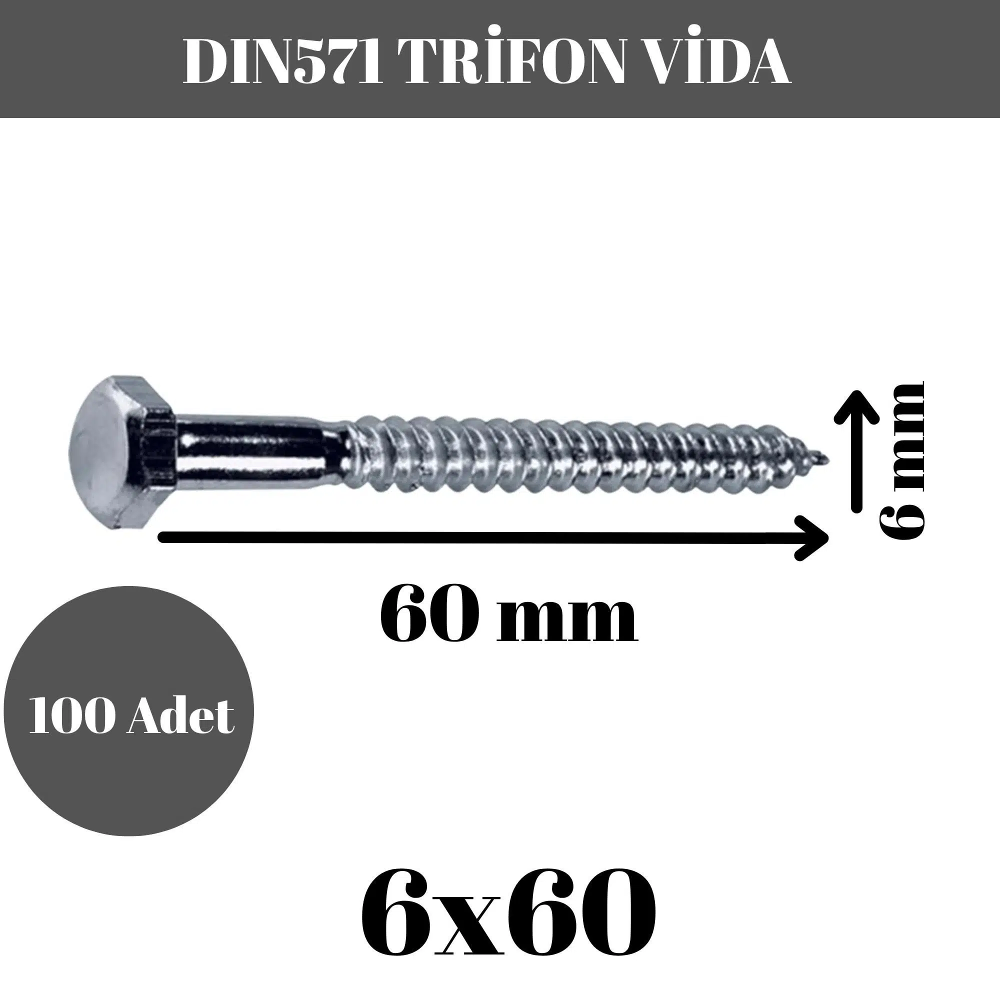 Trifon Vida 6x60 mm Altı Köşe Anahtar Başlı Vida 100'lü Paket