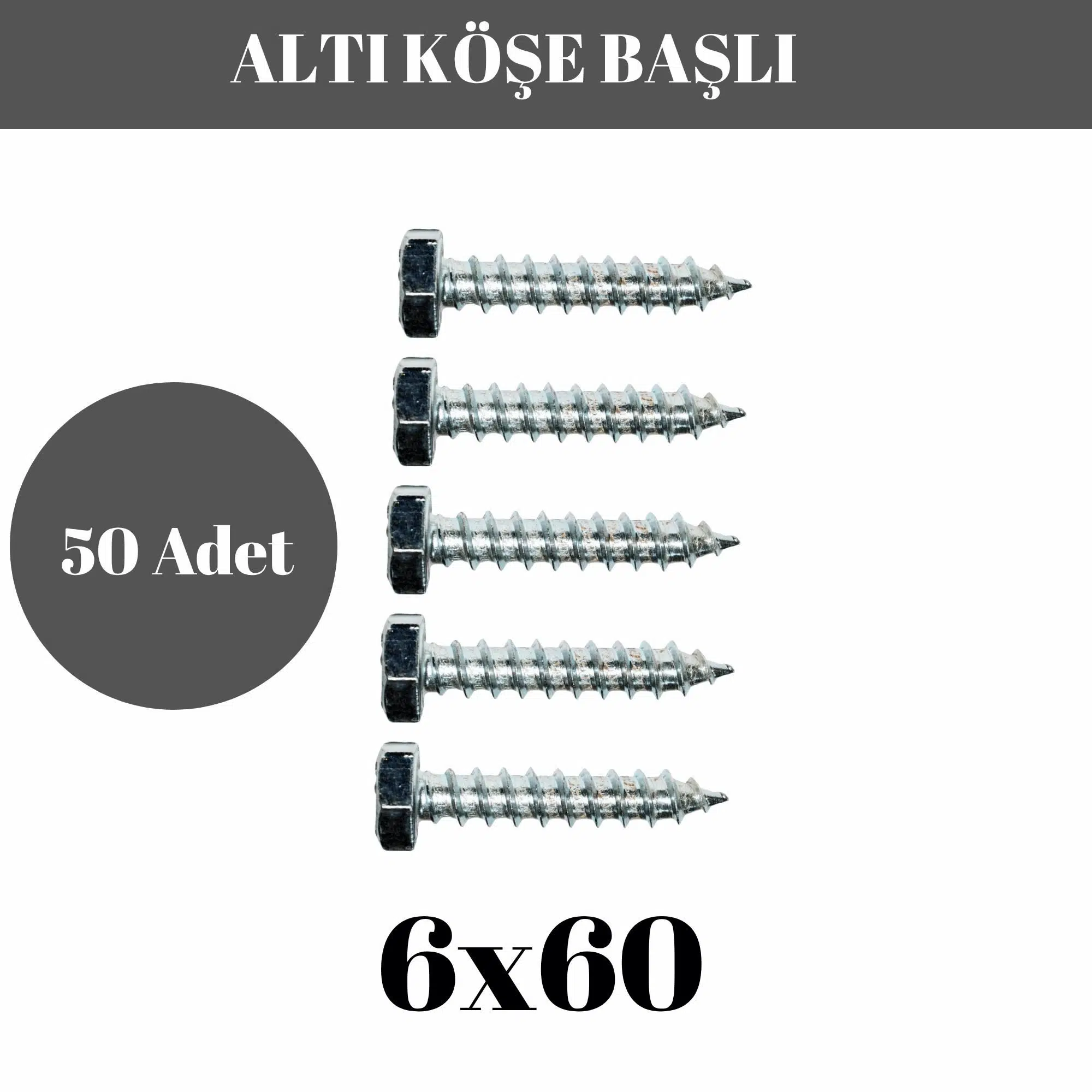 Trifon Vida 6x60 mm Altı Köşe Anahtar Başlı Vida  50'li Paket