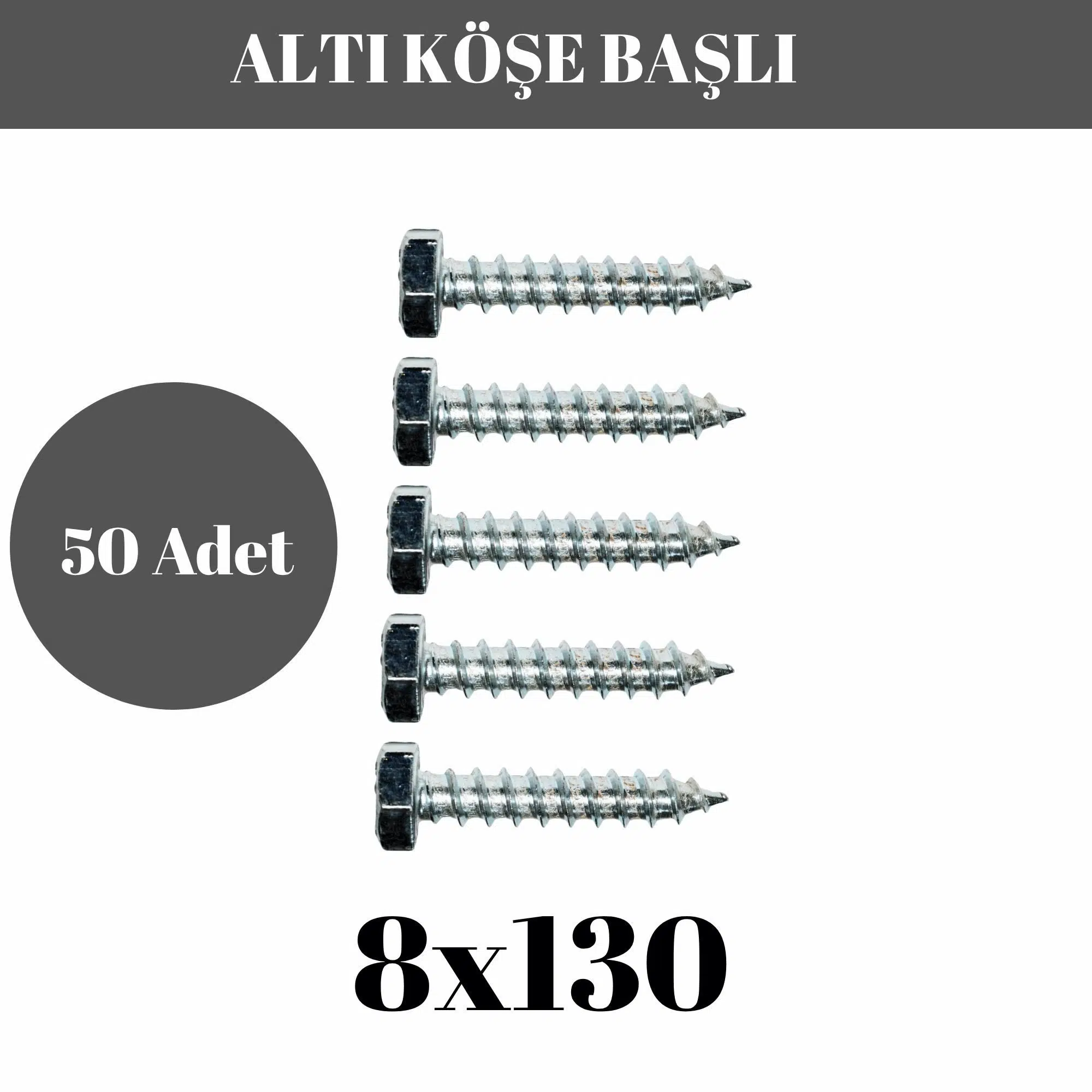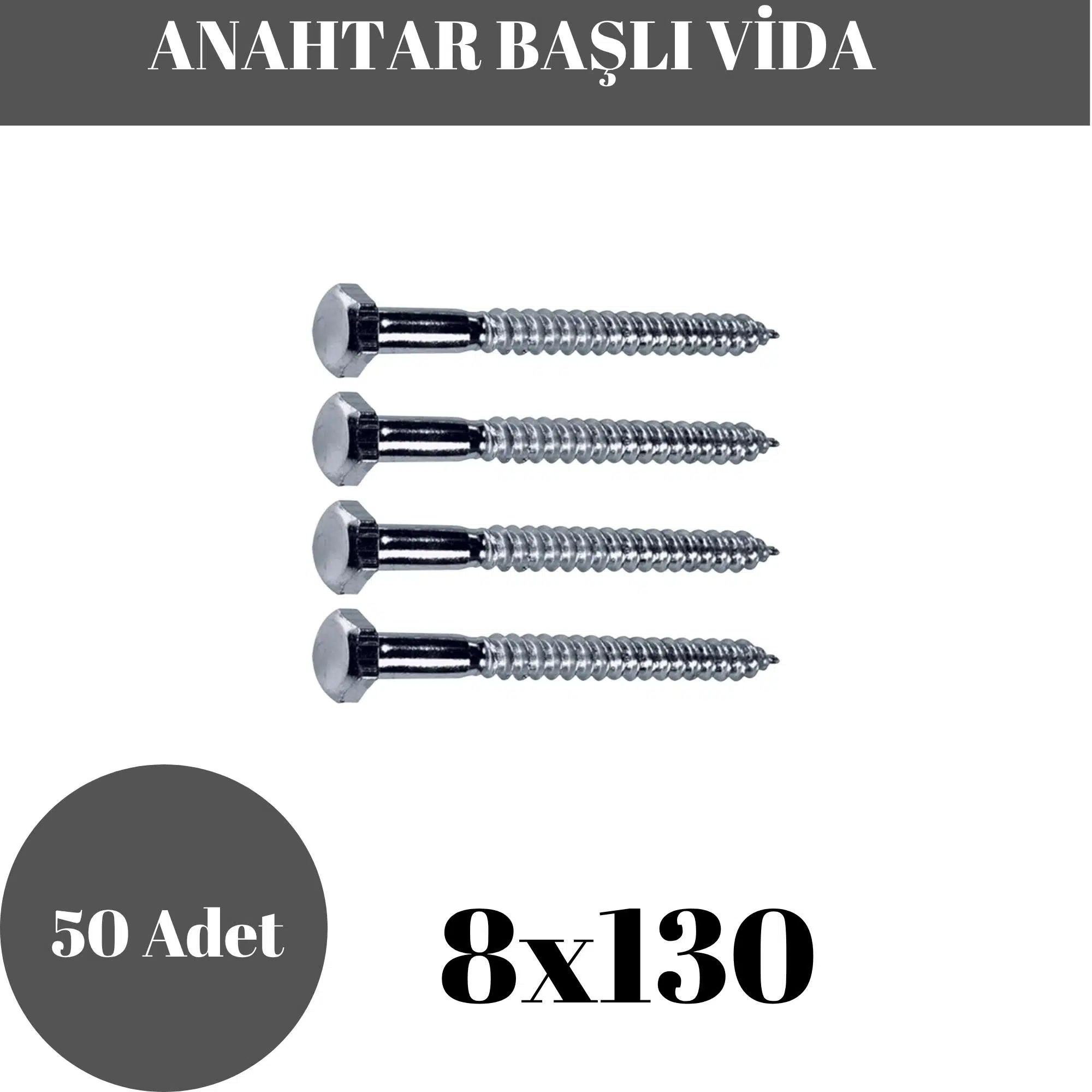 Trifon Vida 8x130 mm Altı Köşe Anahtar Başlı Vida  50'li Paket