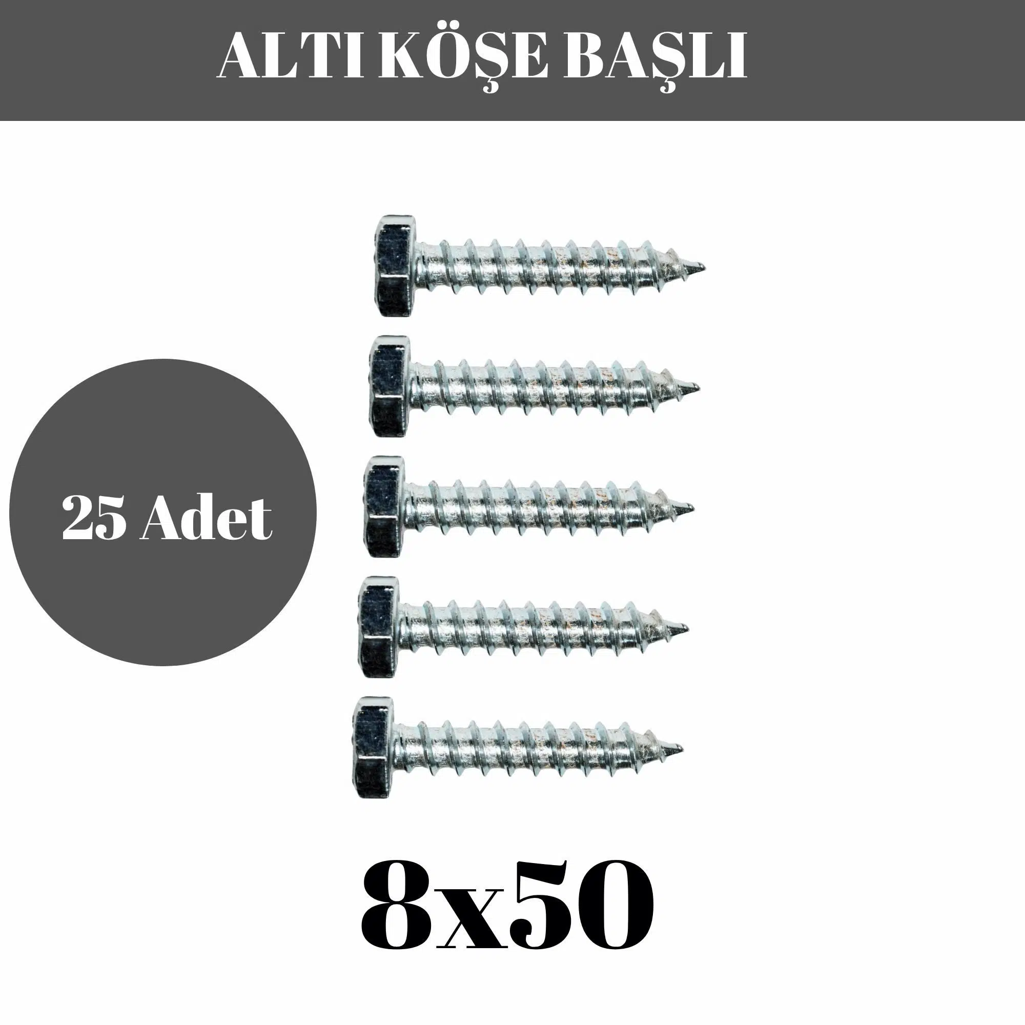 Trifon Vida 8x50 mm Altı Köşe Anahtar Başlı Vida 25'li Paket
