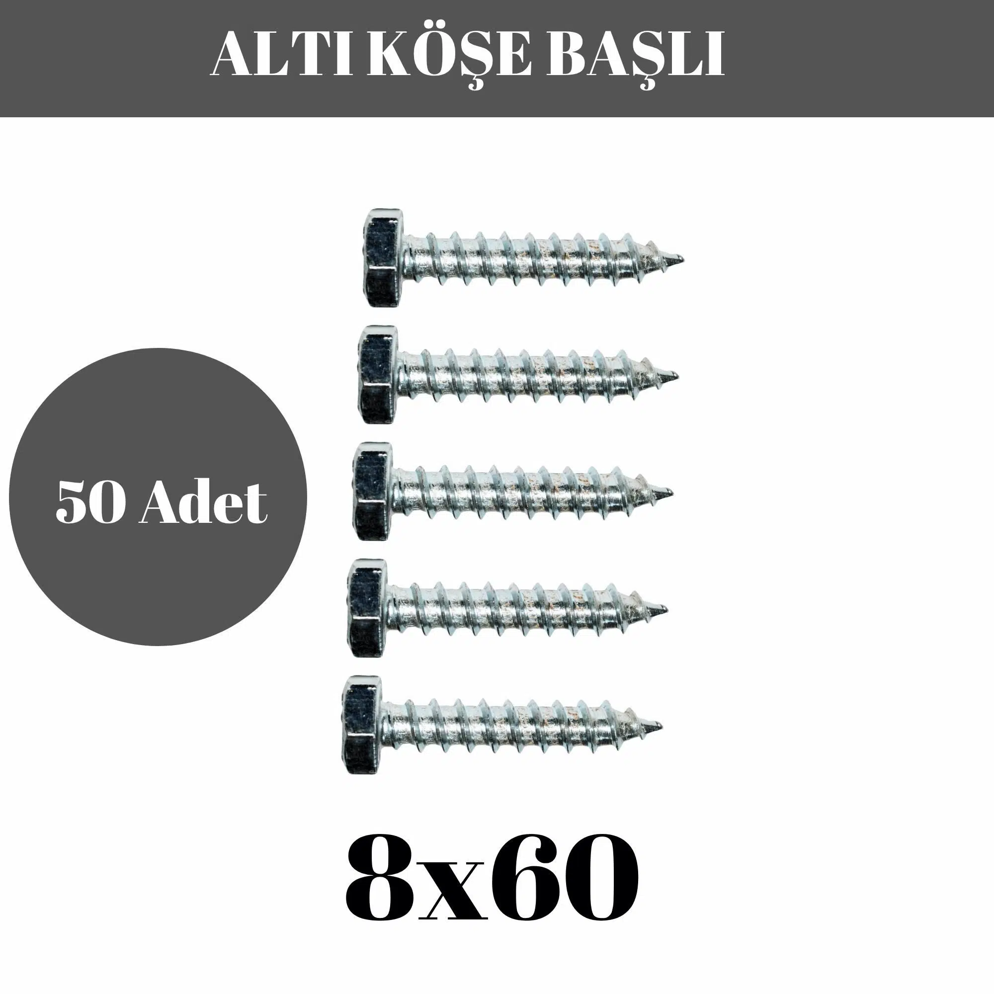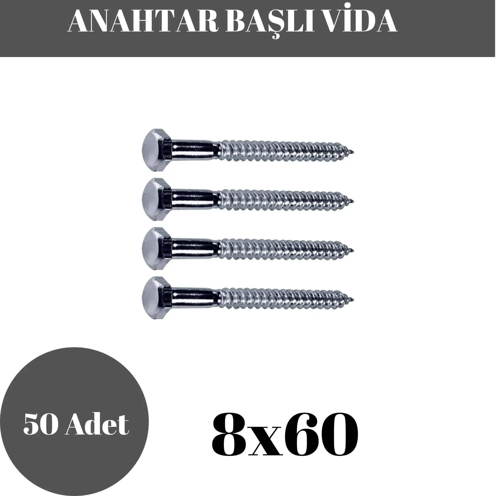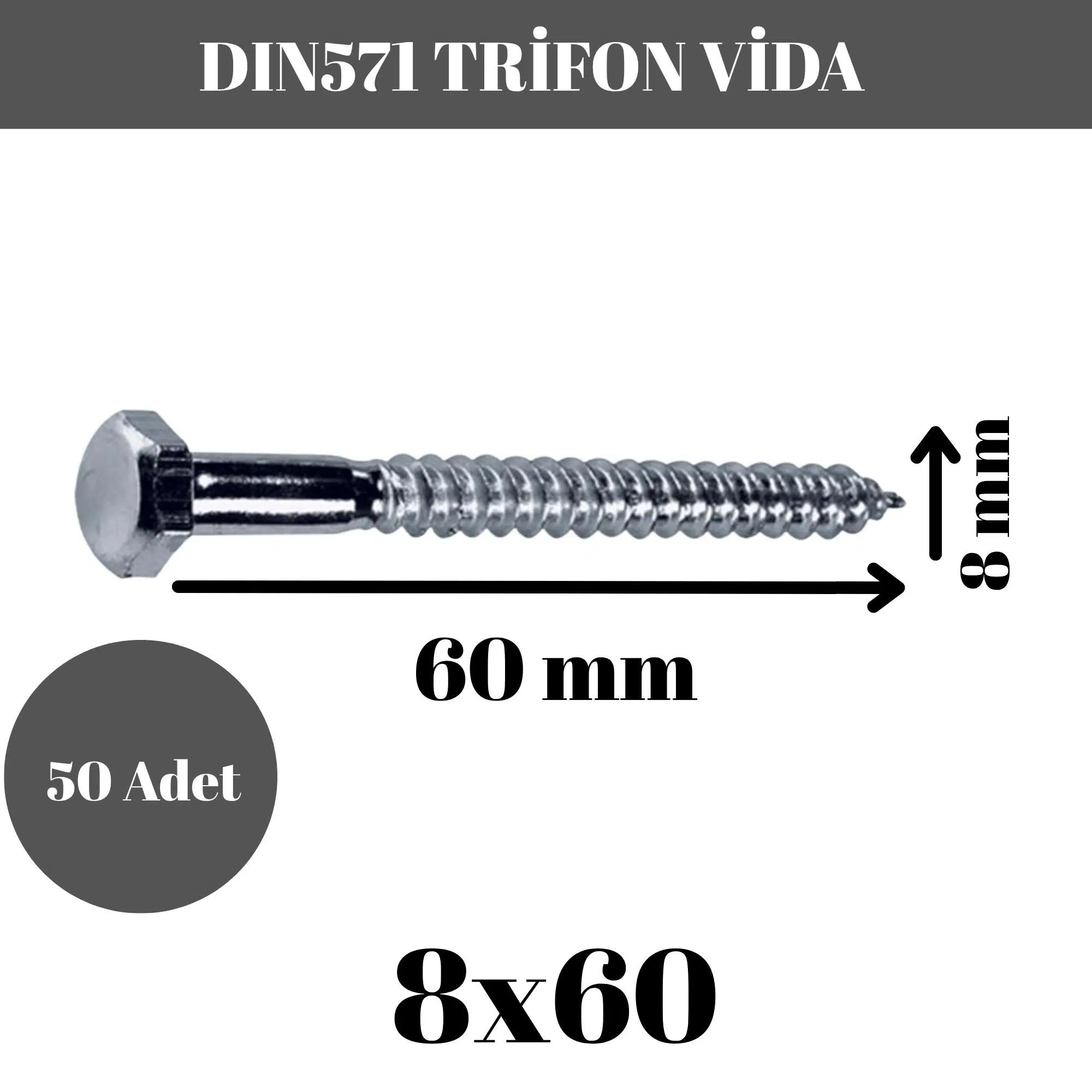 Trifon Vida 8x60 mm Altı Köşe Anahtar Başlı Vida 50'li Paket
